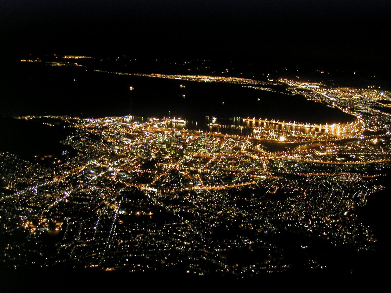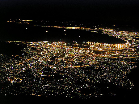 road in the Kruger park. Cape Town at night, as seen from