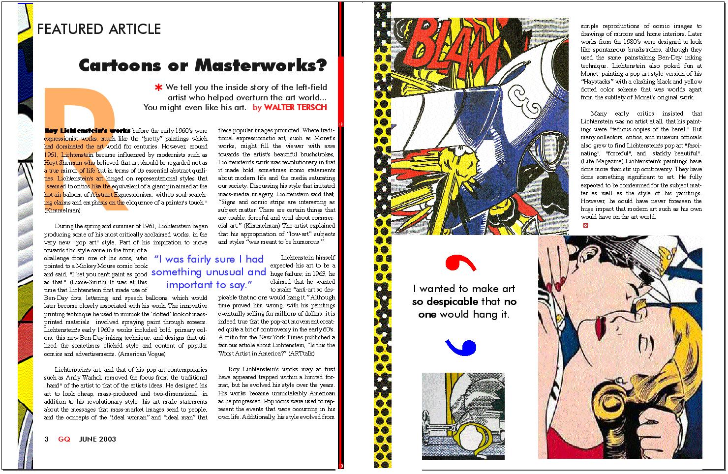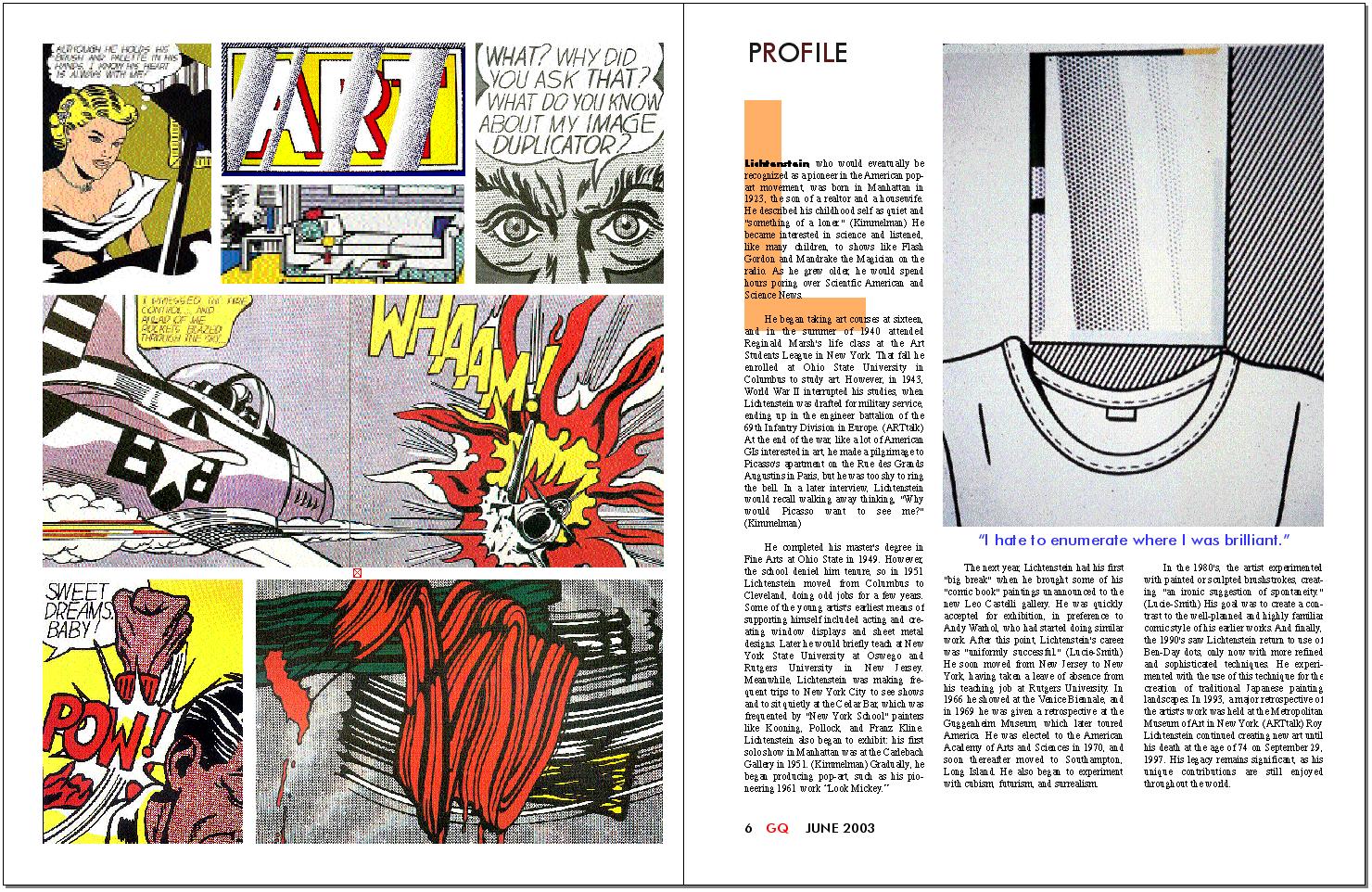 researched and wrote about Roy Lichtenstein, a 20th